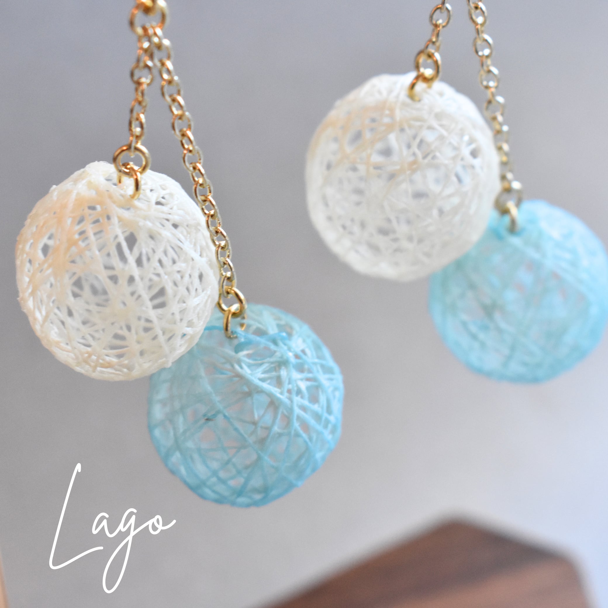 糸玉アクセサリー2ケ玉 color/ホワイト × 水色