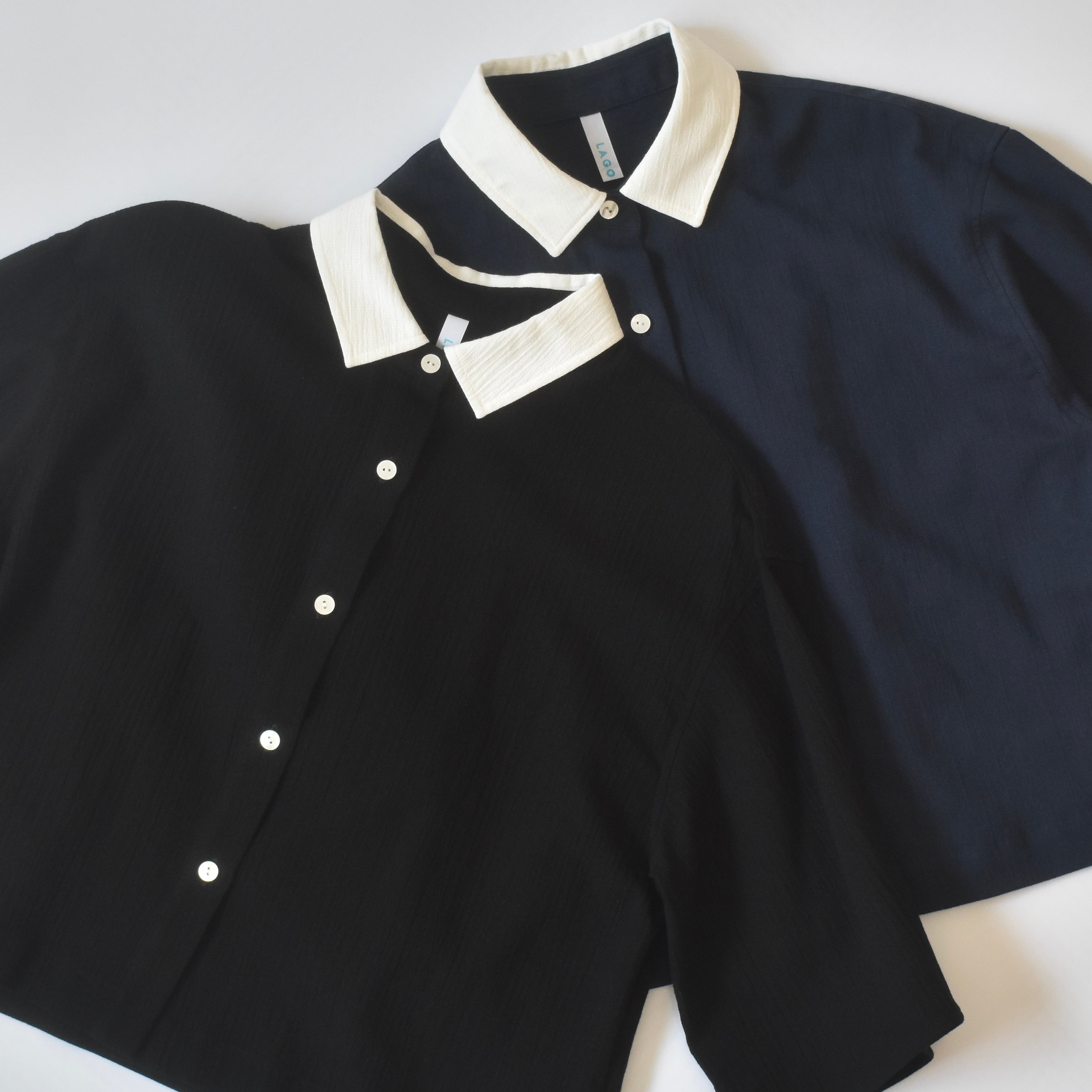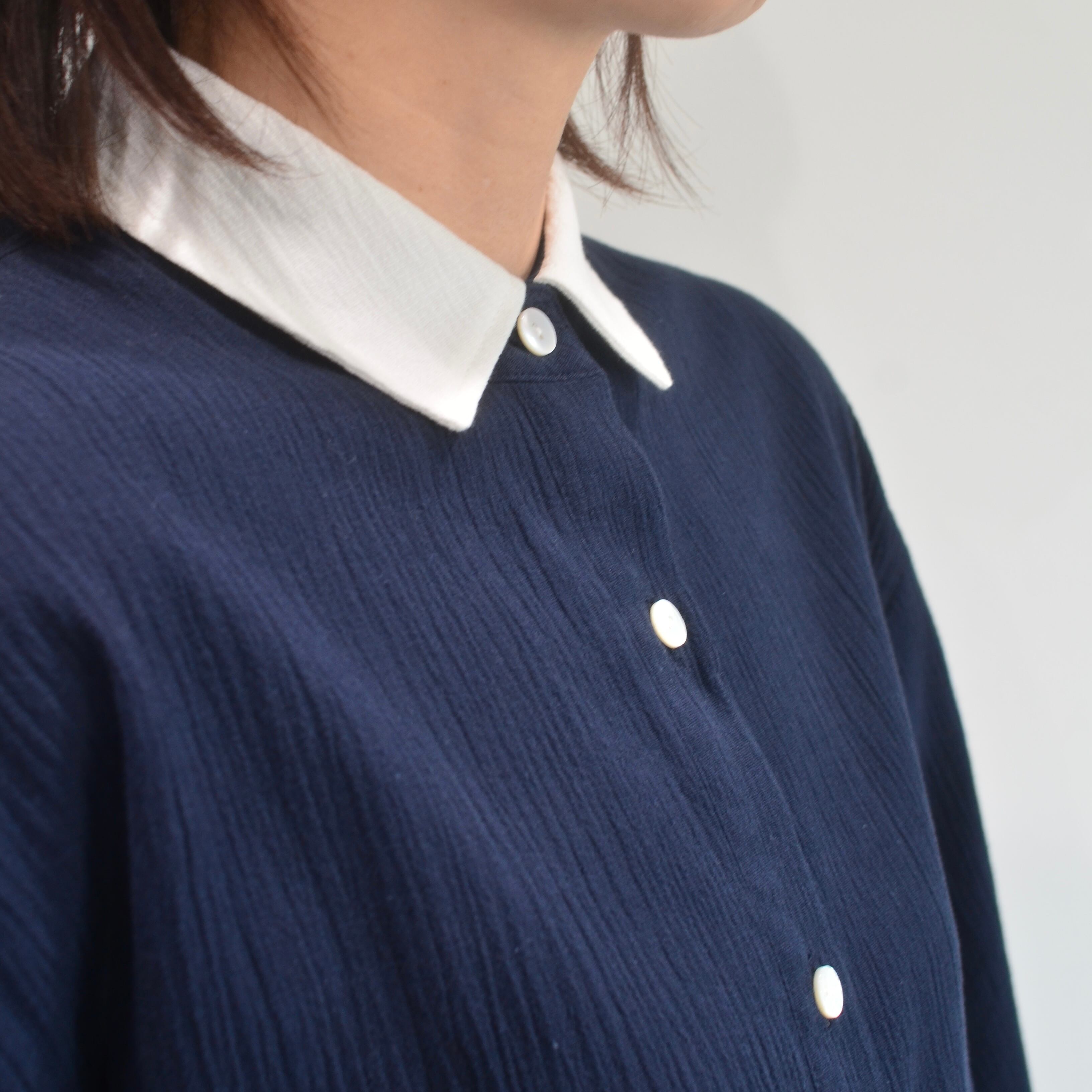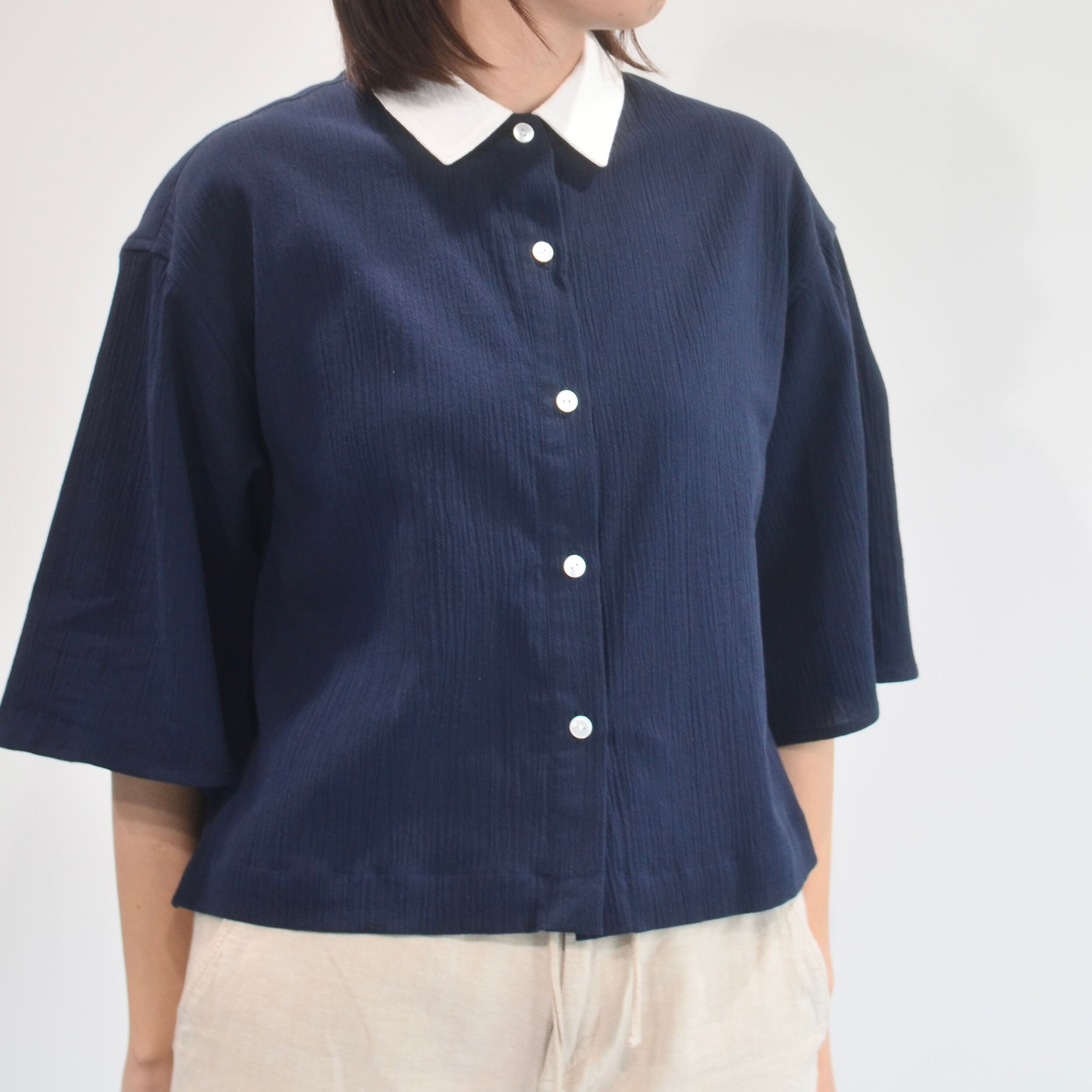 クロップドシャツ 高島ちぢみ ネイビー
